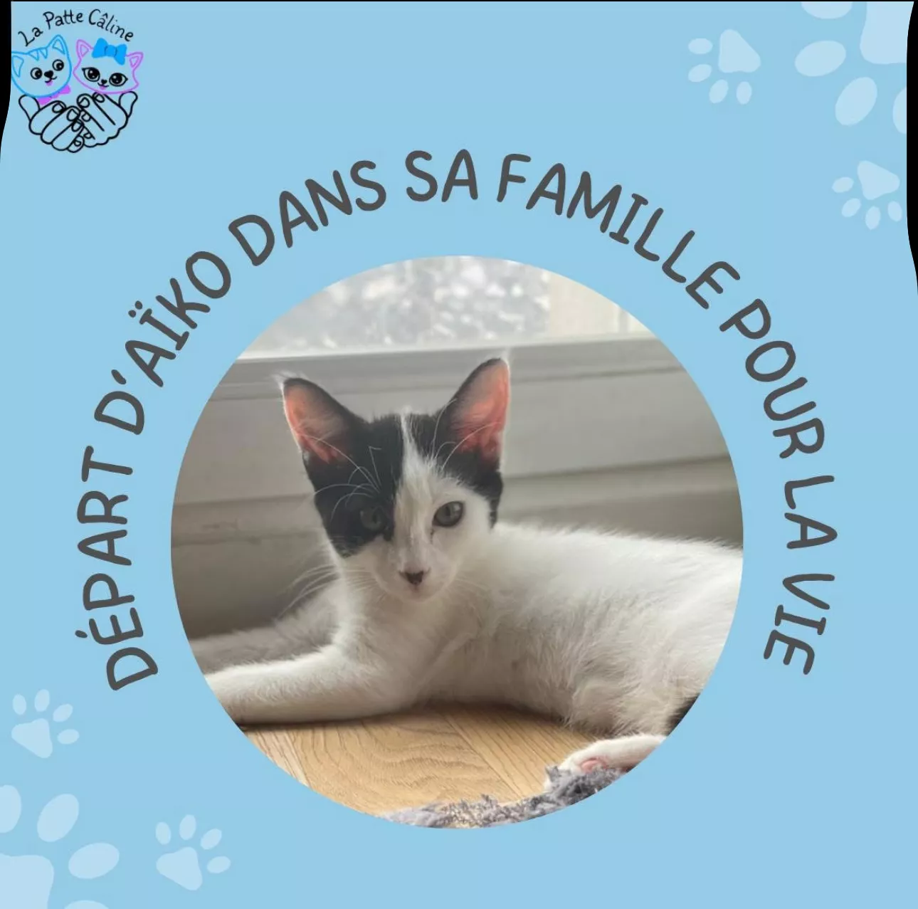 Notre petit Aïko est arrivé il y a un peu moins de 5 mois à la maison et c’est très vite adapté ???? Il adore jouer avec nous mais préfère surtout les câlins et nous suivre partout (jusque sur nos épaules). ???? merci à l’association pour cette belle aventure avec notre petit chat ❤️